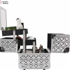Goedkoop 😍 Beautycase Met Spiegel Guardian Beauty – Afsluitbaar – Zilver 🎁