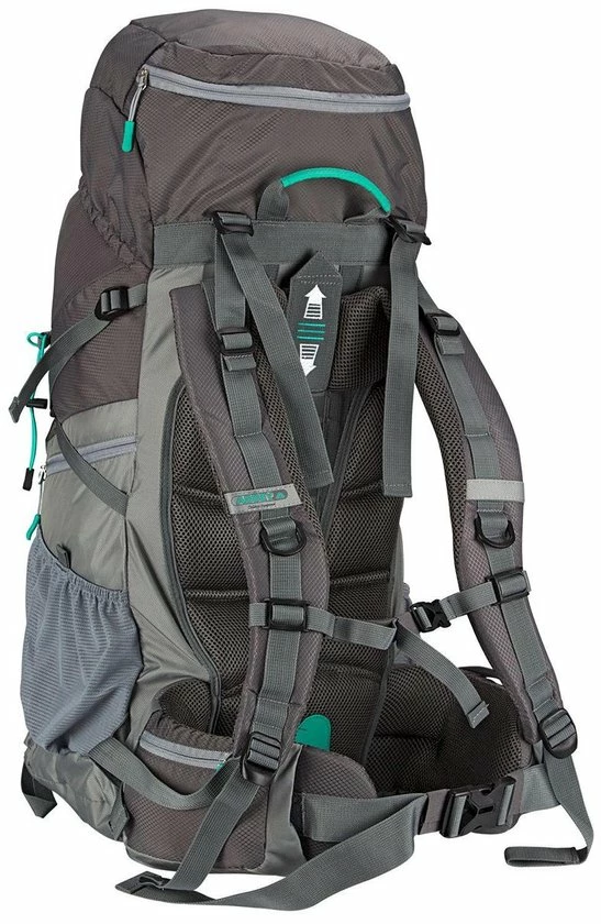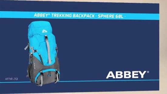 Abbey Trekkingrugzak, deze lichtgewicht rugzak met een inhoud van 60L is de ideale reispartner. De schouderbanden zijn in hoogte verstelbaar waardoor je hem altijd op de voor jou ideale hoogte kunt instellen en maximaal draagcomfort hebt. Met de verstelbare borst-en heupriem kan de rugzak perfect afgesteld worden. Het hoofdvak kun je gemakkelijk van boven vullen en van de voorkant d.m.v. een rits zodat je ook gemakkelijk bij de spullen onderin je rugzak kunt. Op de rugzak zitten verschillende riempjes waar je nog extra spullen aan kunt bevestigen. In de overige vakken kun je je spullen gemakkelijk opbergen. De stof is behandeld met een waterafstotende coating voor de eerste regenspetter,. maar bij een heftige regenbui biedt de geΓ―ntegreerde regenhoes uitkomst.