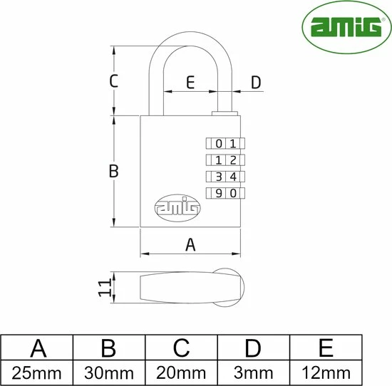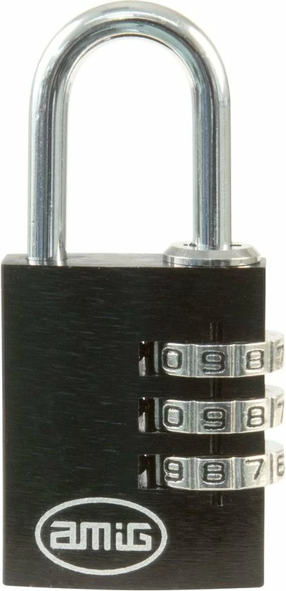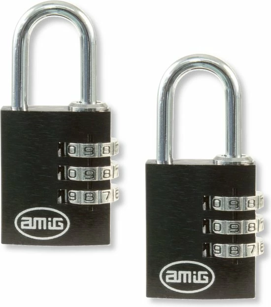 Een set van 2 hangsloten met 3-cijferig cijferslot gemaakt door Spaanse merk AMIG. Kleur zwart