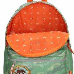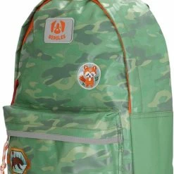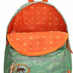 Met deze leuke Beagles Original rugzak met mintgroene camouflage scouting print en badges wil je gezien worden. De rugzak heeft een hoofdvak en voorvak die beiden afsluitbaar zijn met een ritsluiting. Binnenin is de tas gevoerd met oranje stof. Aan de bovenzijde zit een handvat en op de achterzijde zit een groot venster met naamlabel. Ideaal voor mee naar school, gym of logeerpartij. De schouderbanden zijn verstelbaar.