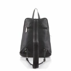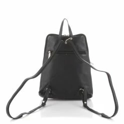 Mooie kleine tot middelgrote leren rugtas uit de Basic Collection van Bear Design die aan de onderkant wat breder uitloopt. Het model is gemaakt van prachtig rundleer. Het ruime hoofdvak heeft een rits die opent over de gehele zij- en bovenkant van de tas. Hierdoor heb je goed overzicht en toegang tot je spullen. Binnenin de tas tref je een 2 vaks verdeling aan. Het tussenschot is tevens een ritsvak. In het achterste vak zit een afneembaar spiegeltje en 3 pasjeshouders. In het voorste vak zit een telefoonvakje. Op de voorzijde Γ©n op de achterzijde zit een ritsvak voor spullen die je snel bij de hand wilt hebben. Aan de bovenkant zit een handvat/lus waarmee je de rugtas makkelijk en snel op kunt pakken of even in de hand kunt dragen. De twee schouderbanden zijn verstelbaar en kunnen ook aan elkaar geritst worden waardoor de rugtas wordt omgetoverd tot een schoudertas.