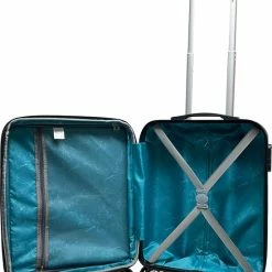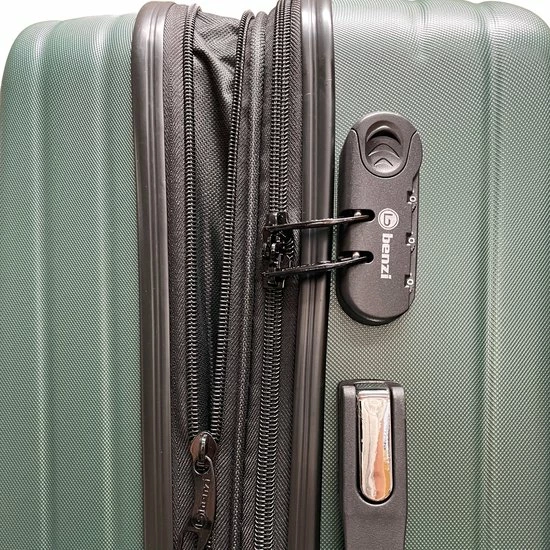 Hardschalen handbagage koffer van het merk Benzi. De koffer is voorzien van een ritssluiting rondom die op slot te zetten is middels een vast cijferslot op de zijkant van de koffer. Binnenin gevoerd, spanbanden en tussenschot met ritssluiting. Op het tussenschot zit een ritsvak voor het overzichtelijk opbergen van kleine reisaccessoires.