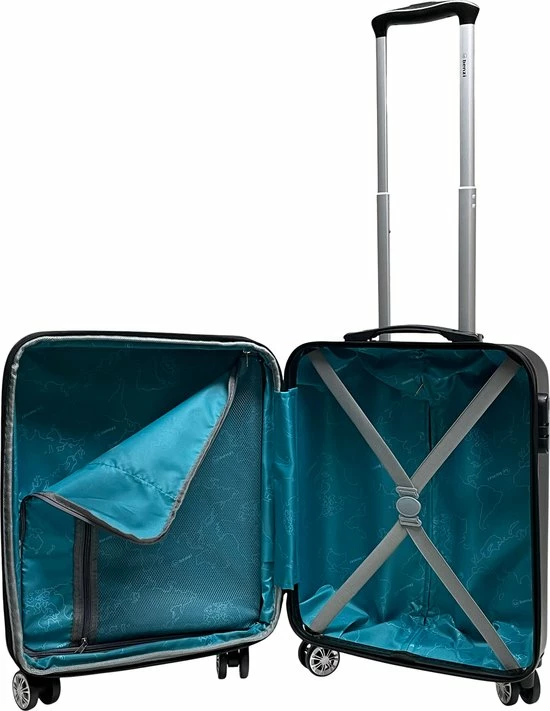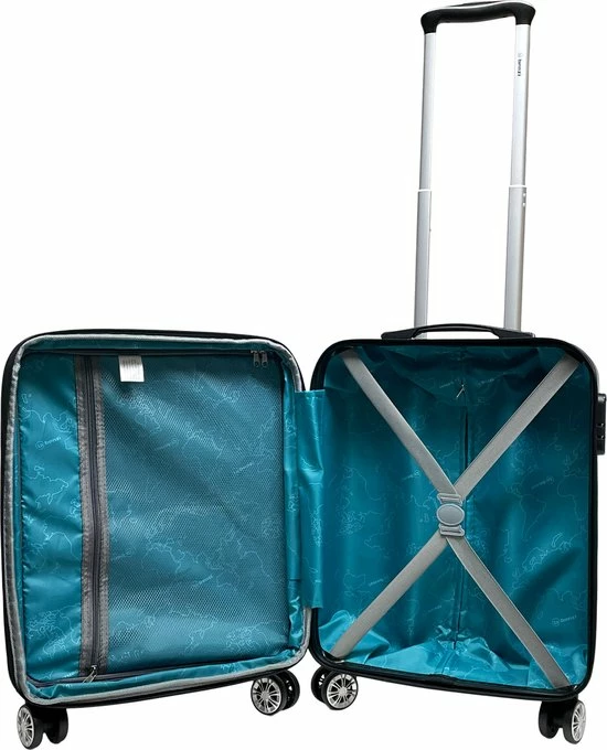 Handvat op bovenkant, uitschuifbare trekstang en comfortabel 4-wiel systeem. Adreslabel aan handvat op de bovenkant. Extra: deze koffer is expandable ofwel qua inhoud/formaat te vergroten. Door de expandable rits open te zetten vergroot je de inhoud van de koffer van 35 naar 39 liter.