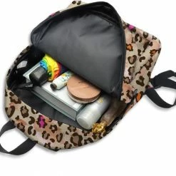 Deze leuke Luipaardprint Rugzak is gemaakt van sterk polyester met een zeer hoge kwaliteit 3D print. Daarnaast is de waterafstotend en rugzak voorzien van stevige schouderriemen, degelijk naaiwerk en sterke metalen ritsen. (Zie foto’s)