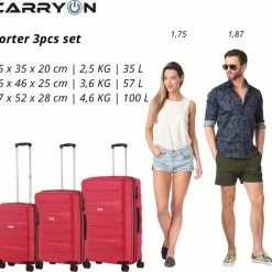 Kopen 🛒 CarryOn Porter ® Kofferset – TSA Trolleyset 3-delig Met OKOBAN – Dubbele Wielen – Rood 💯