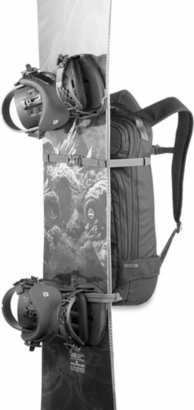 - Extra bijzonderheden: de straps op de voorzijde zijn geschikt om een snowboard (horizontaal en verticaal) of ski’s (schuin) mee te nemen