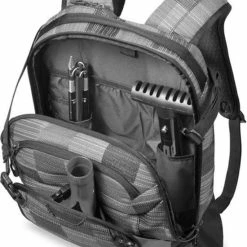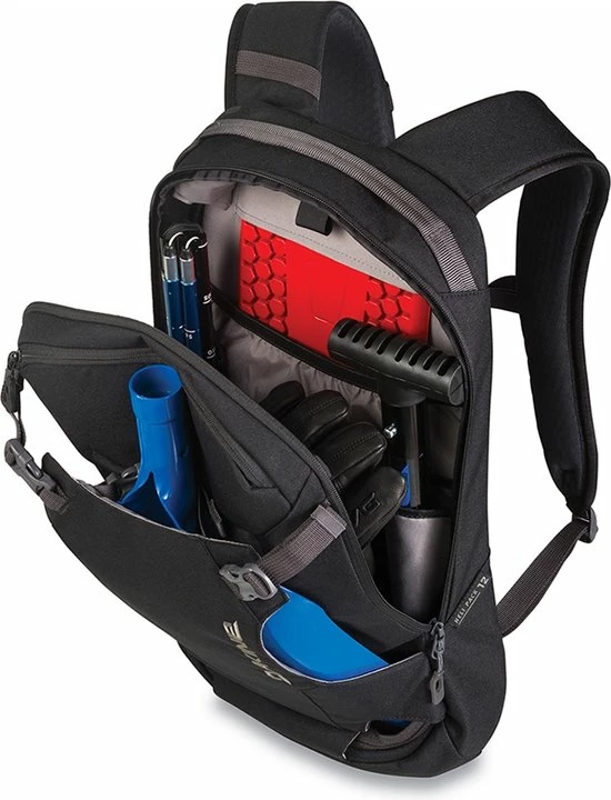 - Vakken: twee grote vakken waarvan in één een laptopvak, klein voorvak en zijvakken met rits/ kleine zak in de heupriem (een van de vakken is met fleece gevoerd om je zonnebril of skibril te beschermen)