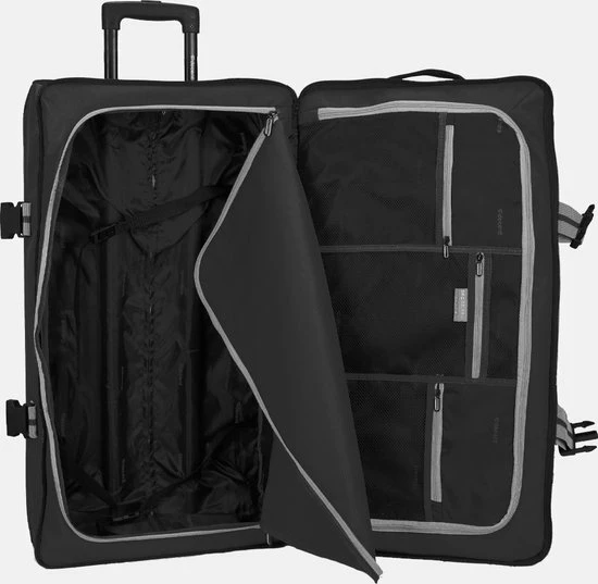 Grote wieltas uit de Sport-Line serie van Decent. De reistas heeft twee soepele wieltjes, een verstelbare trekstang en twee handvatten waardoor de tas gemakkelijk overal mee naar toe te nemen is. Aan de binnenzijde van de tas bevinden zich twee gescheiden compartimenten die worden afgesloten met een rits. Binnenin zitten tevens veel ritsvakjes voor het overzichtelijk opbergen van kleine reisaccessoires. Op de voorzijde van de tas zitten twee ritsvakken. De spanbanden aan de zijkanten maken het mogelijk om bagage zo compact mogelijk te maken. Thuis is de reistas makkelijk plat te maken en op te bergen.