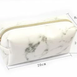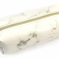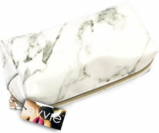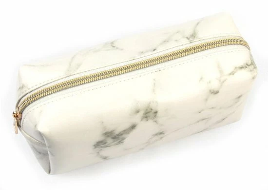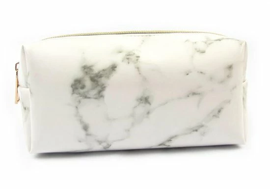 Dit handige etui met luxe White Marble print en goudkleurige rits is dan net wat voor jou!