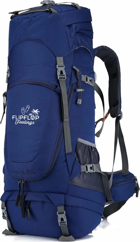 Deze blauwe backpack heeft een rits rondom (opent als koffer) en is verstelbaar in maat van 60 tot 80 liter en maakt het dus de ideale backpack voor man of vrouw, klein of groot en elk soort reis!