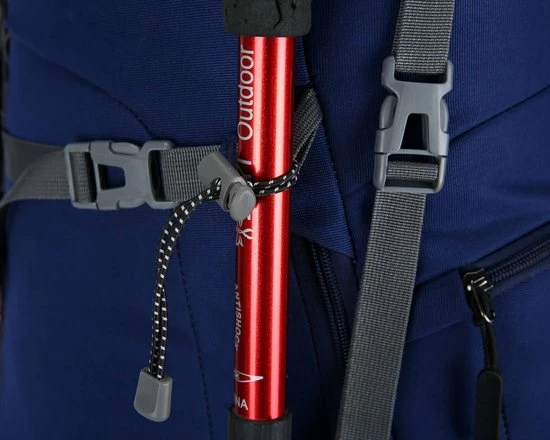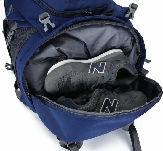 Of je nou een zonnige vakantie naar het strand gepland hebt of juist een avontuur in AziΓ« of Zuid Amerika aangaat, deze rugzak is geschikt voor alle landen. De backpack is gemaakt van polyester en daardoor sterk en ontzettend licht. Hij weegt maar 1,8kg en is waterafstotend. Deze blauwe backpack heeft een comfortabele rug padding en leunt hierdoor fijn tegen de rug. De heup en schouderbanden zijn van zacht materiaal en daardoor draag je hem altijd comfortabel, hoe zwaar die ook is. Je hoeft je geen zorgen te maken of de backpack past bij jouw lichaamslengte, want hij is verstelbaar zodat elk volwassen persoon hem op de juiste maat kan dragen. Het hoofdcompartiment heeft een inhoud van 40 tot 60 Liter en hierdoor is de backpack geschikt voor allerlei type backpack reizen. Wanneer je een extra trui of lange broek nodig hebt is dit geen probleem.