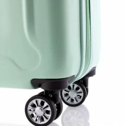 Grote hardschalen, ABS koffer uit de Beetle serie van Gladiator in kleur mintgroen. Koffer is voorzien van een ritssluiting rondom die op slot te zetten is middels een vast TSA cijferslot op de zijkant van de koffer. Binnenin gevoerd en voorzien van een tussenschot met ritssluiting en spanbanden. Handvat op boven- en zijkant en voorzien van comfortabel 4-wiel systeem.