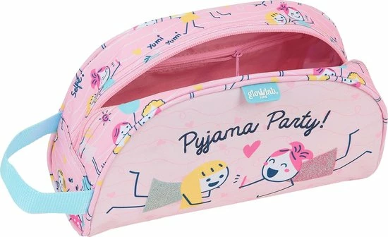 GLOWLAB Beauty Case, Best Friends. Pyjama Party! Leuke toilettas of beautycase om mee te nemen op vakantie, met een weekendje weg of uit logeren. De pastelkleuren maakt dit tasje tot een mooi geheel. De toilettas beschikt over 1 groot vak met ritssluiting, hierin bevindt zich een onderverdeling en een kleiner vak met ritssluiting. Een fantastisch cadeau voor de liefhebber!