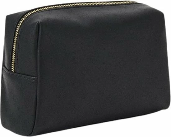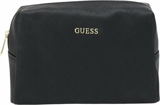 Mooie klassieke dames toilletas in de kleur zwart uit de nieuwste collectie van Guess. De toilletas is voorzien van een logo print en afgewerkt met goudkleurige accenten wat zorgt voor een luxe uitstraling. De toillettas is ideaal voor mee op reis te nemen.