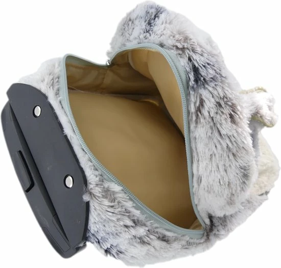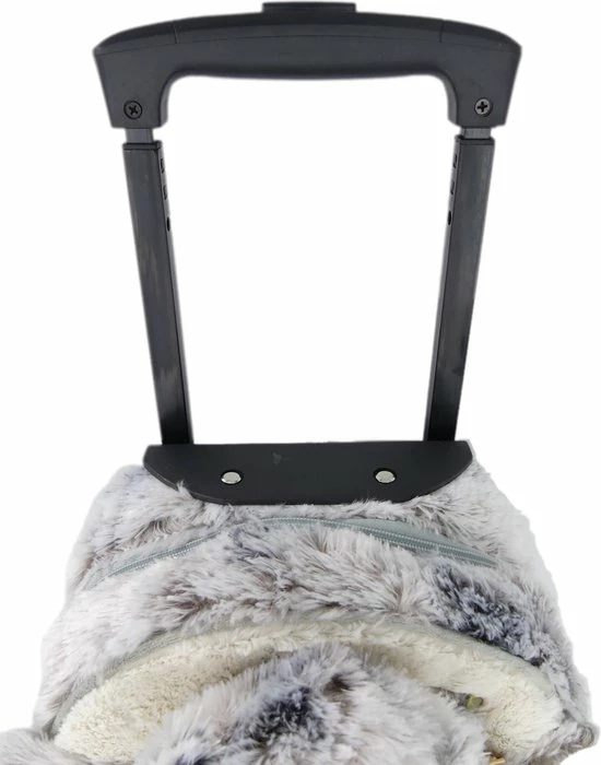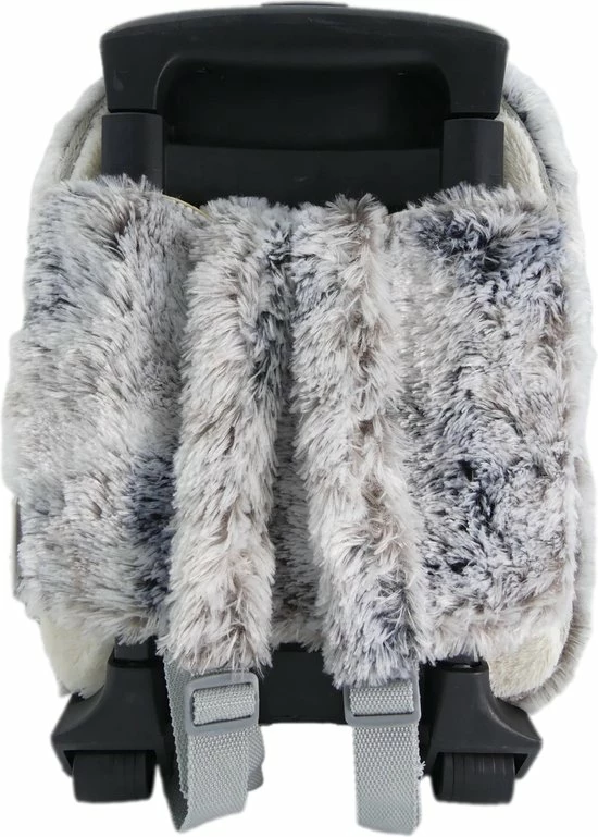 Om je kind gerust te stellen, zodra je ergens heen gaat, is het mogelijk om de knuffel los te halen van de trolley. De knuffel zit bevestigd in een buidel en zit vast met twee strips met daarop klittenband. De knuffel gaat dan niet los tijdens vervoer. De knuffel heeft aan de achterzijde een rits om nog wat extra kleine spullen op te bergen.