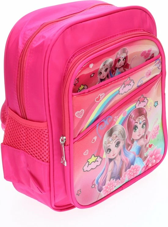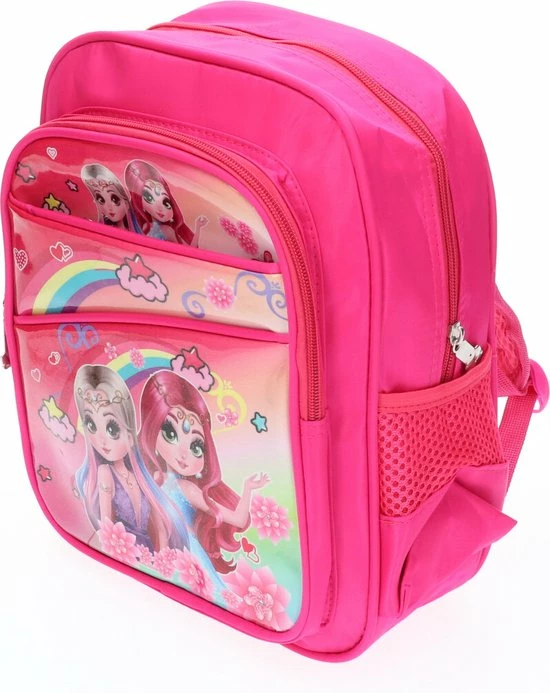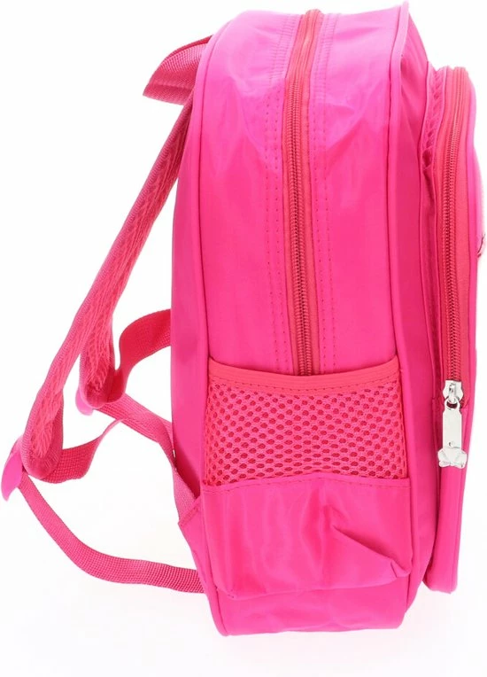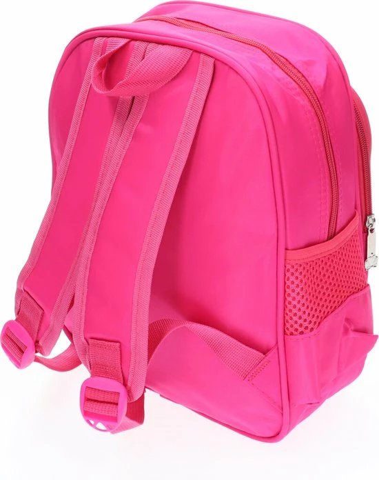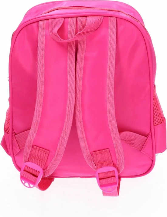 Aan de voorzijde bevindt zich een klein voorzakje die sluit met een rits. Dit is net groot genoeg om een snack of een schriftje in op te bergen.