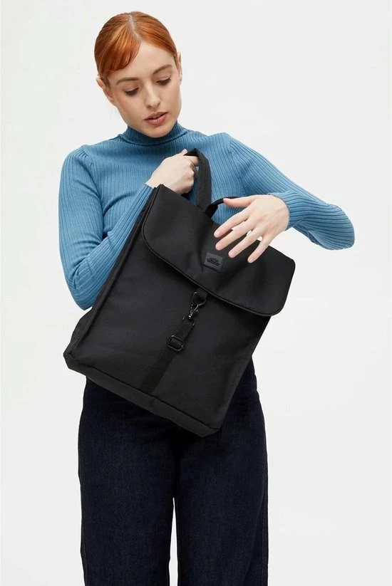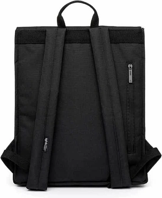 Deze Handy Mini rugzak is de kleinere versie van de Handy rugzak. Dit slanke model biedt makkelijk ruimte voor een 13,6-inch laptop. De waterbestendige stof maakt het de perfecte keuze voor dagelijks woon-werkverkeer. De rugzak heeft een enkele riemsluiting met een metalen haak, en heeft een binnenvak met ritssluiting en een snel toegankelijk achtervak.