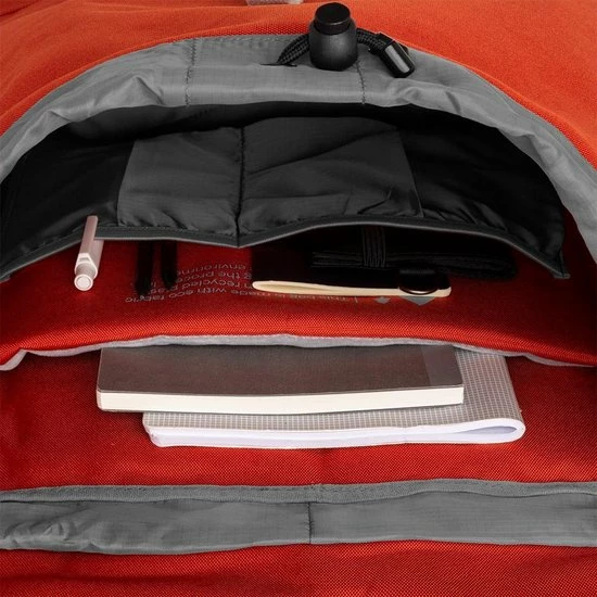 De Scout Backpack van het merk Lefrik is een zeer mooie, ruime waterproof laptop rugzak. De rugzak is van eco friendly polyester dat gemaakt is van gerecyclede plastic flessen. Daarnaast heeft de rugzak een duurzame waterafstotende TPE coating gekregen. Hierdoor kan de tas tegen een stootje en blijven jouw eigendommen droog tijdens verschillende weersomstandigheden. Het ruime hoofdvak is afsluitbaar met een aansnoerkoord en daarover een klep met een schuif-/clicksluiting. In het hoofdvak zitten 2 mesh steekvakken en een gewatteerd laptopvak waarin een 14 inch laptop past. Op de klep zit een klein ritsvakje voor bijv. je sleutels.