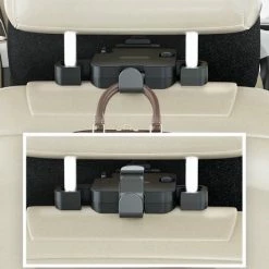 *4. Multifunctionele achterbankorganizer – Hoofdsteun met één stoel vergemakkelijkt de behoeften van de bestuurder voorin en de passagier achterin! Er is een telefoonrek (Upgrade #) en een opvouwbare ophanghaak om de telefoon en dingen op de achterbank vast te houden.