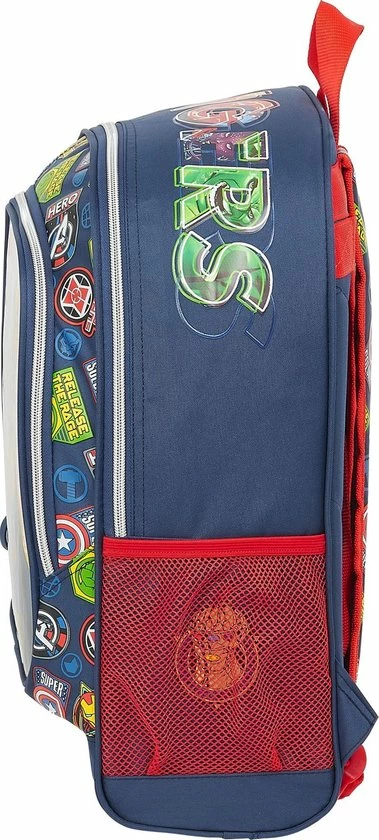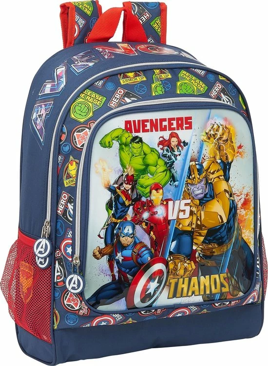 Marvel Avengers Rugzak, Heroes vs Thanos. Higher, Further, Faster! Wie van de Avengers zal Thanos verslaan? Een rugzak welke ideaal is om mee te nemen naar school of uit logeren, bijvoorbeeld. De rugtas beschikt over 2 vakken met ritssluiting, 2 zijvakken en een handige ophanglus. Het prachtige superhelden design maakt deze tas helemaal af.