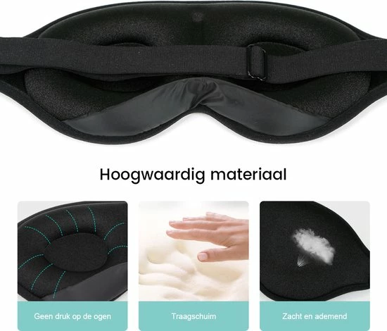 Bij de neus is het oogmasker op een speciale manier genaaid, hierdoor sluit hij perfect aan op jouw gezicht. Hij zal dan ook geen licht doorlaten. Het masker heeft een verstelbare gesp sluiting zodat je geen last krijgt van een drukkend gevoel tijdens het slapen. Dus ook zeer geschikt voor mensen met migraine of andere hoofdpijnklachten.