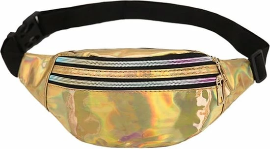 Of je nu een wandeling gaat maken of je gaat naar een festival, met deze leuke glanzende gouden heuptas heb jij al jouw belangrijke spullen altijd bij de hand! De tas heeft een ruim hoofdvak en voorvak waarin je, je telefoon, portemonnee, sleutels, Partydop of festivalbril gemakkelijk kunt bewaren. De band rondom je heup is verstelbaar, zodat je het tasje altijd perfect op maat kunt maken en met de ritssluiting sluit je de tas gemakkelijk af. Het tasje heeft een prachtige gouden glanzende laag, bijpassende ritsen en een zwarte band en is gemaakt van kunststof. Met de zon aan de hemel, een drankje in de hand, een goed gezelschap en zwaaiende handen is dit heuptasje het perfecte festivalaccessoire!
