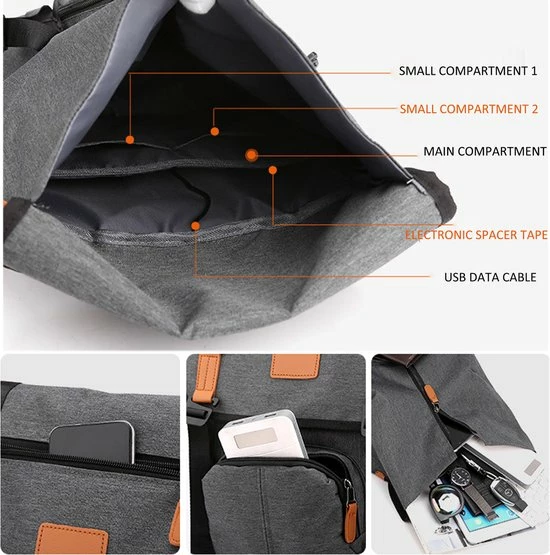 - Grote opbergruimte: laptoptas voor 15,6 inch, 15 inch of 14 inch MacBook/laptop en iPad, oplader, mappen, boeken, kleding etc. Binnenzakken voor je portemonnee en je telefoon. Het voorvak is perfect voor snelle vondsten, zoals je ID voor werk, sleutels voor open deuren, twee zijvakken voor een waterfles en een compacte paraplu om alles netjes te houden.