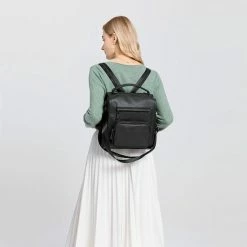 Deze rugtas van Miss Lulu is een geliefd item onder vrouwen die graag hun handen vrij willen hebben en met alle gemak de deur uit willen gaan. Deze chique rugtas van hoogwaardig kunstleer is door het ideale formaat geschikt voor dagelijks gebruik en ook nog eens praktisch in gebruik. Dit model is ideaal om mee te nemen op vakantie, mee te nemen tijdens het shoppen of gewoon dagelijks te gebruiken. Dankzij de diverse vakjes kunnen al jouw essentials veilig en geordend worden opgeborgen. De rugtas heeft een hoofdvak met ritssluiting – intern zijn er twee open vakken en een vak met ritssluiting. De rugzak heeft een aantal externe vakken: twee voorzakken met ritssluiting, twee magnetische zijzakken met drukknopen en een achterzak met ritssluiting – deze zijn ideaal voor items waar je snel en gemakkelijk toegang toe wilt hebben.