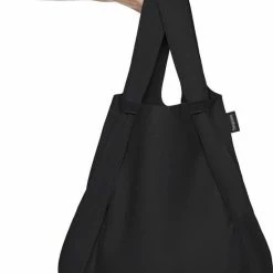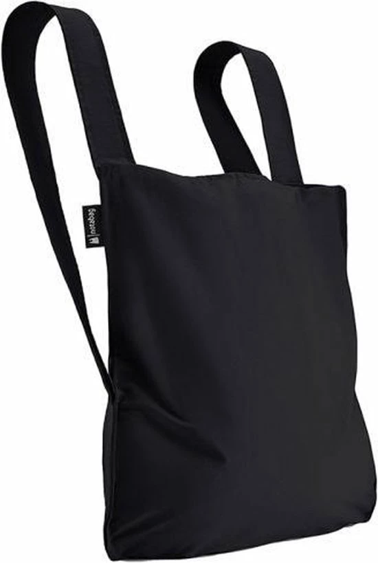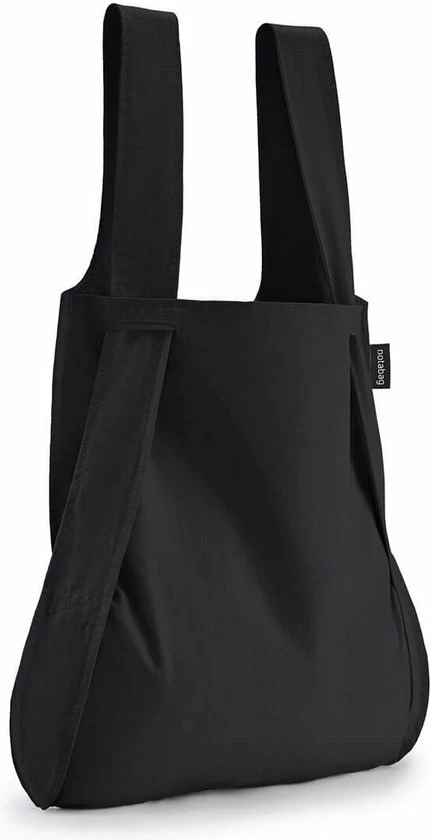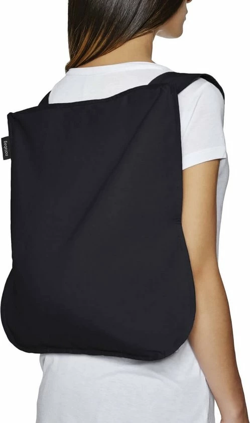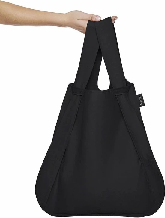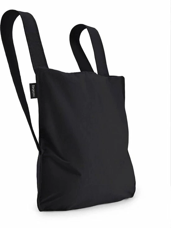 Geen plastic tasjes meer nodig met dit handige opvouwbare tasje! De tas is gemaakt van milieuvriendelijk materiaal. Deze tas van Notabag in de kleur zwart past gemakkelijk in je jas of handtas. Het is opvouwbaar tot een klein pakketje en makkelijk mee te nemen. Dit is een schoudertas en met een enkele trek aan de banden transformeert het van een slanke, milieuvriendelijke tas naar een gemakkelijk te dragen rugzak. In de tas zit een opbergvak, waar je jouw portemonnee of sleutels in kunt bewaren.