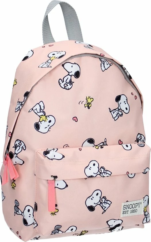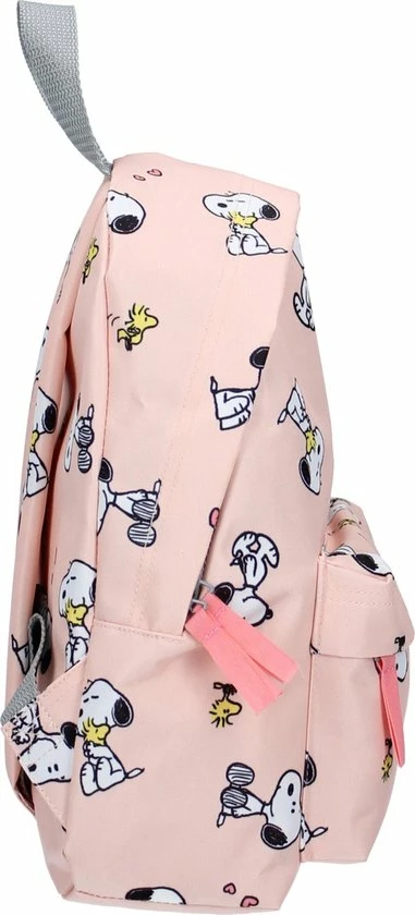 Met deze prachtige rugzak uit de Peanuts collectie neem jij jouw spullen overal mee naartoe. Hij heeft een mooie trendy look met een vrolijke print van Snoopy en zijn vriendjes. De tas heeft een ruim hoofdvak en voorvak met ritssluiting. De gewatteerde schouderbanden zijn in lengte verstelbaar. Hierdoor is de rugzak altijd comfortabel te dragen. Aan de bovenkant zit een handige ophanglus.