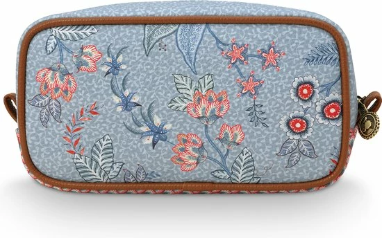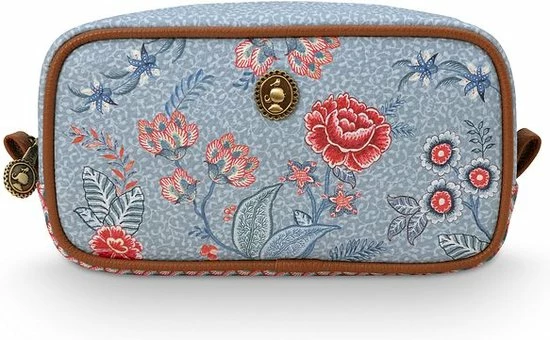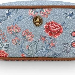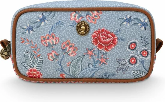 In deze lichtblauwe toilettas van Pip Studio kan je je allerdaagse verzorgingsproducten opbergen of meenemen. Het make-up tasje is versierd met het Flower Festival Design, waar je meteen vrolijk van wordt. De etui is gemaakt van waterafstotend imitatieleer, wat deze toilettas waterdicht maakt.