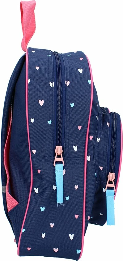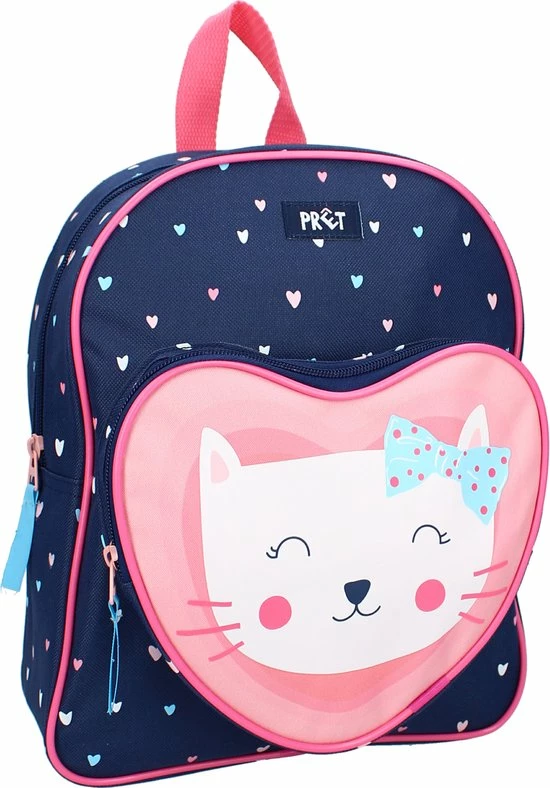 Een goede dag begint met een glimlach. En hoe tover je die bij je kindje nou makkelijker op het gezicht dan met deze schattige rugzak van PrΓͺt? De donkerblauwe tas heeft roze en witte accenten. Het meest opvallend is natuurlijk de schattige witte poes op het roze hartje op het voorvak. Het hoofdvak van de rugzak is ruim. Hierin past met gemak een broodtrommeltje en pakje drinken om mee te nemen naar school. De comfortabele schouderbanden van de tas zijn verstelbaar. Eenmaal op school hangt je kindje de tas makkelijk op aan de lus aan de bovenkant.