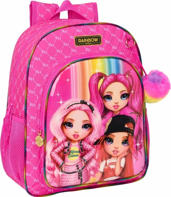 Rainbow High Rugzak, Pink. Met deze mooie, roze tas van Rainbow High mag jij gezien worden! Deze fashionista’s weten zich volgens de laatste mode te kleden. Ben jij ook zo gek van deze meiden? De tas beschikt over twee ruime vakken met rits en twee open zijvakken voor, bijvoorbeeld, een bidon. Ideaal voor gebruik op school of een dagje weg. De leuke afwerking met o.a. een mooie, pluizige, hanger aan de rits maken de tas helemaal af. Een geweldig back-to-school product en een leuk cadeau om te geven aan een fan van Rainbow High!