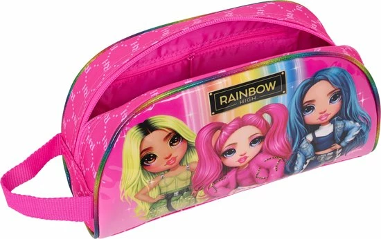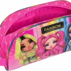 Rainbow High Beauty case, Pink. Toffe, roze beautycase van de populaire fashionista’s Rainbow High. Welke is jouw favoriet? Deze toilettas heeft één ruim vak met ritssluiting en een handige ophang lus. Afgewerkt met mooie regenboog kleuren, wat ervoor zorgt dat je deze make-up tas een echte blikvanger is. Een waanzinnig cadeau voor een fan van Rainbow High voor een verjaardag of de feestdagen.