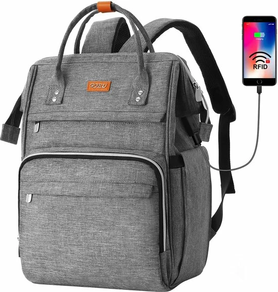 - γRFID-tasγDeze rugzak voor dames heeft een bijzonder kenmerk: een RFID-tas met klittenbandsluiting. De RFID-bescherming beschermt uw persoonlijke gegevens tegen diefstal (bijv. creditcards, paspoorten en rijbewijs)