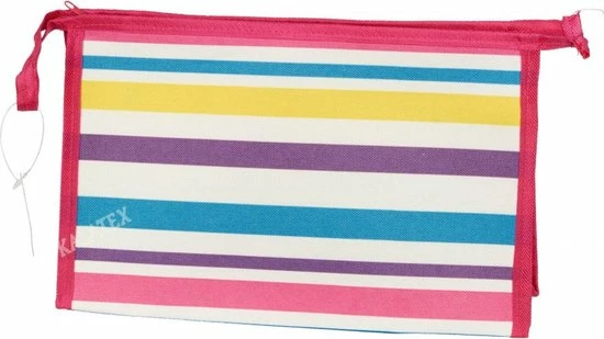 De basis van het make-up tasje is mat en de lijnen zijn glanzend, hierdoor krijg je een leuk, speels effect!