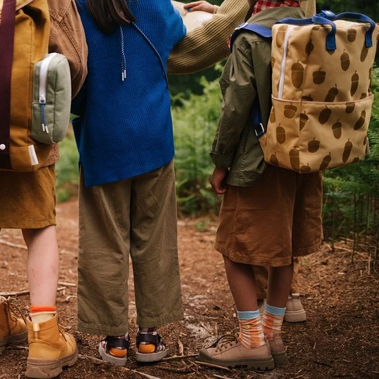 Deze rugzak is klaar om met u op avontuur te gaan! Met deze ‘adventure collection’ introduceren we een nieuwe kwaliteit – stevig en robuust canvas. De rugzak heeft twee ruime zijvakken. Hij sluit met een trekkoord en een klep aan de bovenkant. De voering heeft een eikelpatroon en is waterdicht. Alle ritsen zijn van YKK en de schouderhengsels zijn verstelbaar. Aan de binnenkant vind je een elastische flessenhouder en een zak over de hele achterkant die sluit met klittenband. Op het naamplaatje kun je je naam en contactgegevens schrijven. * afmetingen – 27 x 13 x 46 cm * maximale lengte van het schouderhengsel – 67 cm * materiaal buitenkant – katoen canvas * materiaal binnenkant – waterdicht nylon We raden je niet aan om de tas in de wasmachine te wassen, je kunt deze tas gemakkelijk schoonmaken met een natte doek. Gewoon wat water is voldoende!
