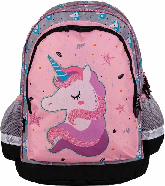 Unicorn Rugzak, Magic. Mooie rugzak met een eenhoorn-afbeelding. Deze fijne, multifunctionele tas is een must-have voor de fans van unicorns. Een echte blikvanger door de leuke afbeelding, afgewerkt met glitters. De tas is ideaal voor schoolspullen, sporten of een dagje weg. Bevat drie vakken en twee open zijvakken. Een waanzinnig leuk back-to-school item en een leuk cadeau-idee voor een verjaardag of de feestdagen!